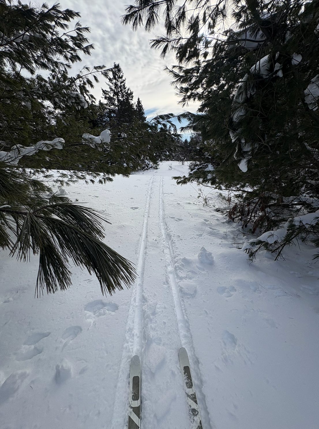 Movement has been lower than I’d like this season, but my legs feel strong. With each kick and glide, I realize something: it takes trust and letting go to glide. You can’t force it. You have to lean into the momentum, release into the forward motion, let the skis (and legs) do what they’re designed to do.